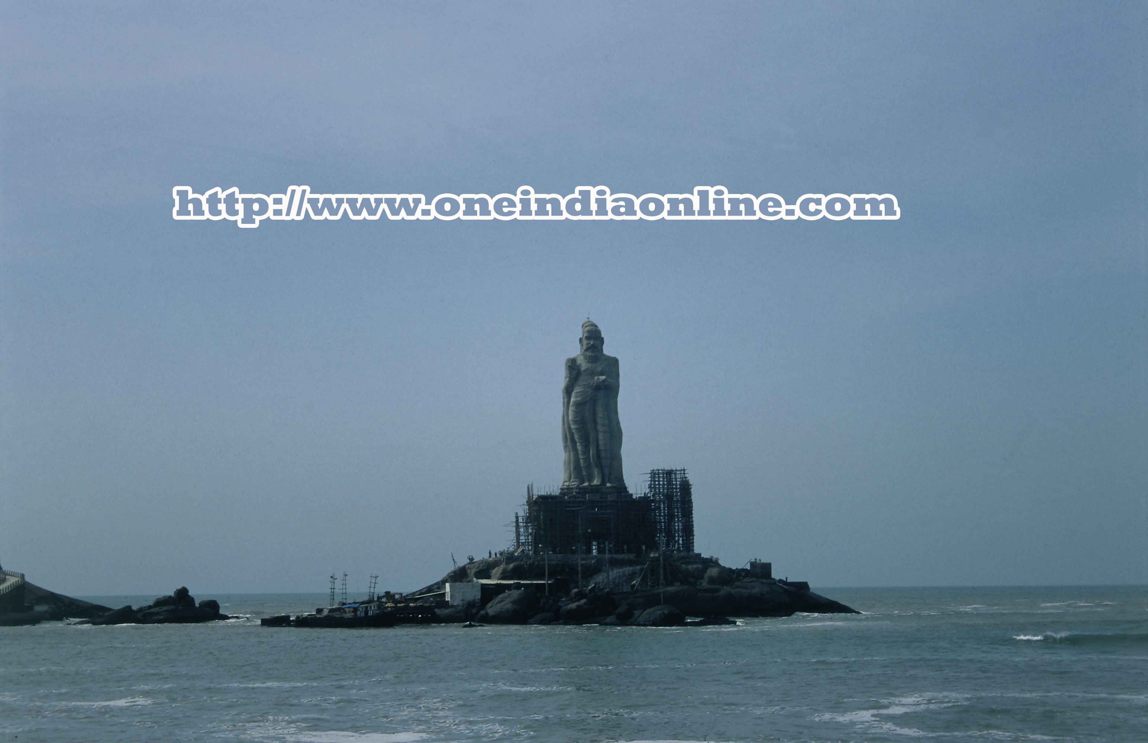 On the rocks stands “Vivekananda Rock Memorial” built in 1970 a blend of all the architectural styles of India. A statue of Swami Vivekananda has been installed in the memorial. One can also see Sri Padaparai, the foot prints of the Virgin Goddess. Ferry services are available to this memorial on this rock, form 7.00am to 11.00am and 2.00pm to 5.00pm. The Government of Tamil Nadu has installed a statue of the great Tamil savant Tiruvalluvar, the author of the famous Thiru-Kural on the other rock.