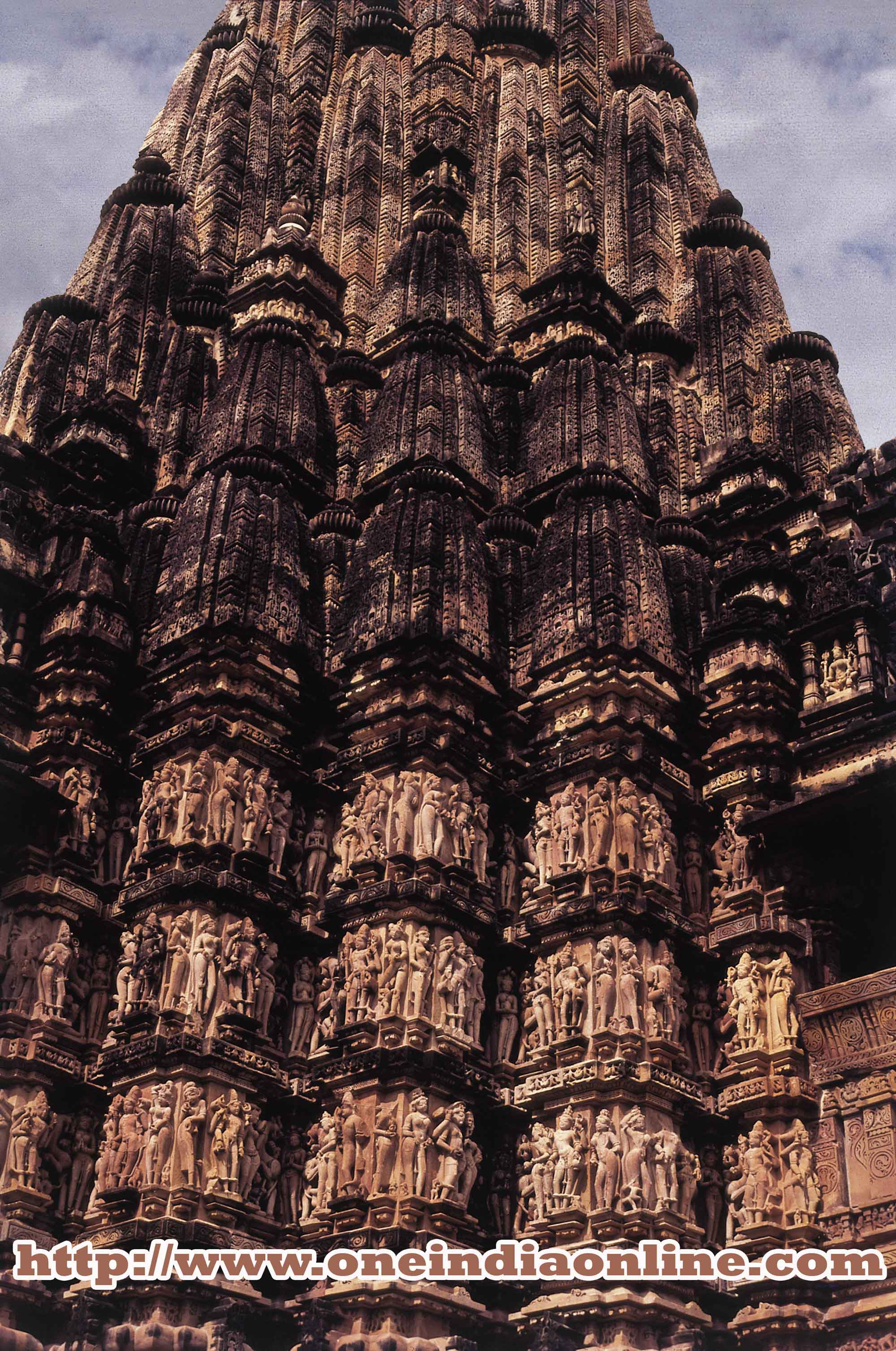 the entire temple, heavily decorated with a variety of sculptures that allude to the pleasures, pastimes, lifestyle, desires, and conquests of the Chandela dynasty. Here you